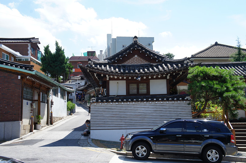 而小巷弄裡 迂迴的坡 一棟又一棟的韓屋