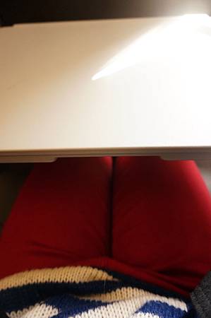 還好我有帶延長線跟別人借了一個插座位