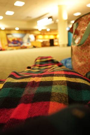 等到五點左右機場工作人員開始叫大家起床不能再睡在大廳了我們這才起了身