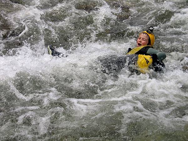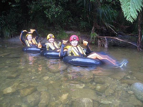 接下來就要迎向另一個挑戰 坐在泳圈裡急流泛舟