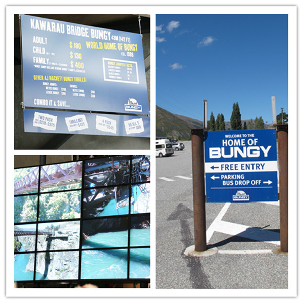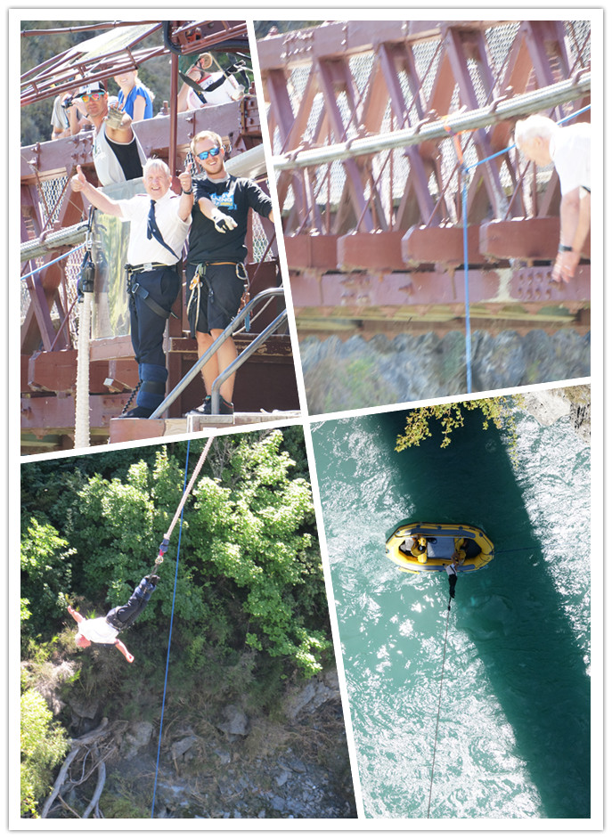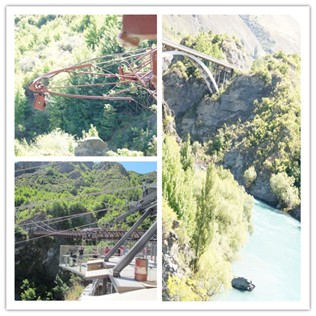 1988 由AJ Hackett Bungy 兩人開始在 Queenstown 的1880年建的歷史橋Kawarau Bridge正式世界第一個商業高空彈跳發源地,由43公尺一躍而下,至今超過百萬人在此高空彈跳。跳一次要價180NZD 約4500ntd,排隊的人絡繹不絕,AJ真是賺翻了! 不跳也可以去免費欣賞瘋子表演~~